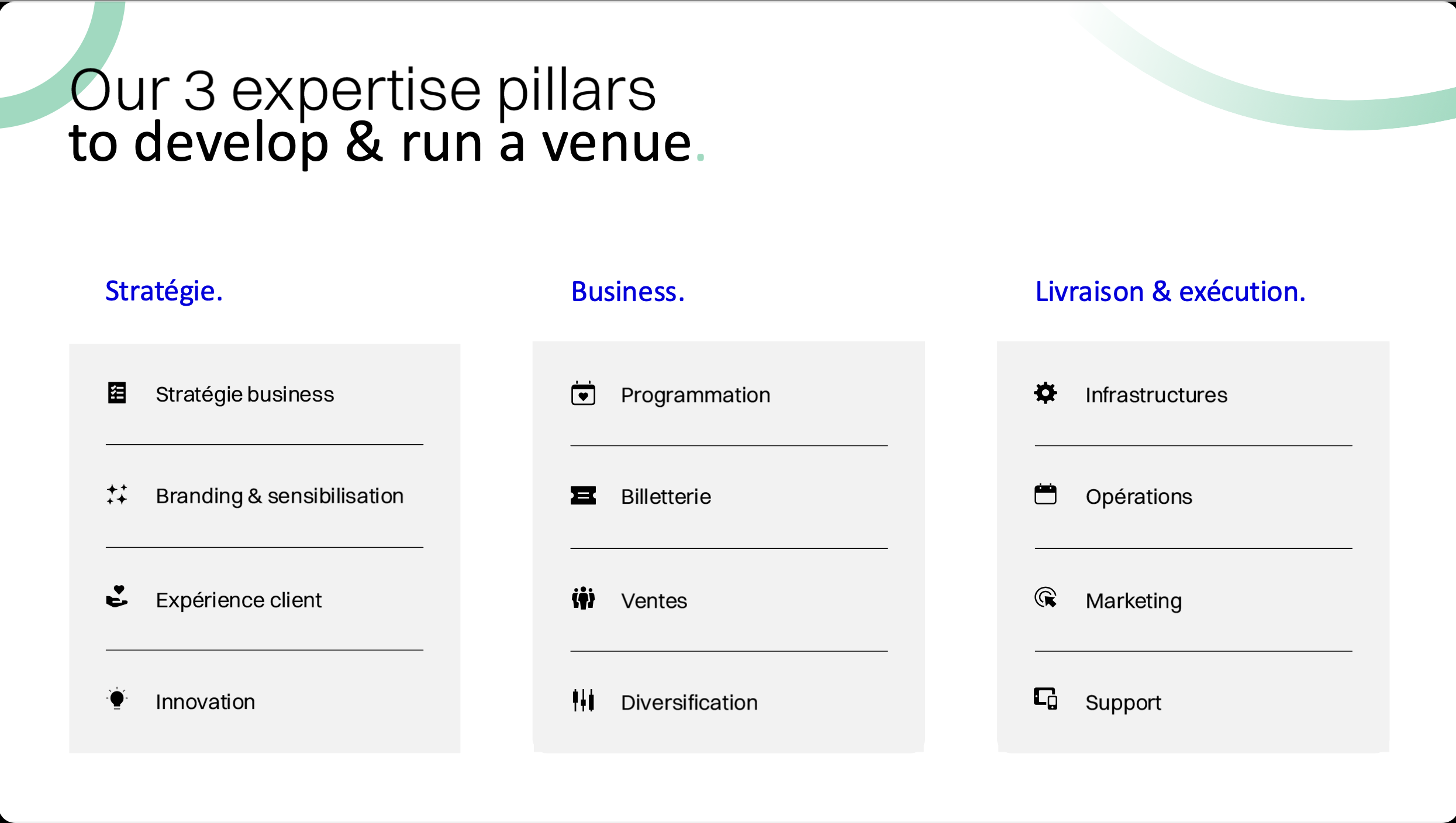 Positionnement, stratégie de communication & branding, design des lieux, transformation digitale